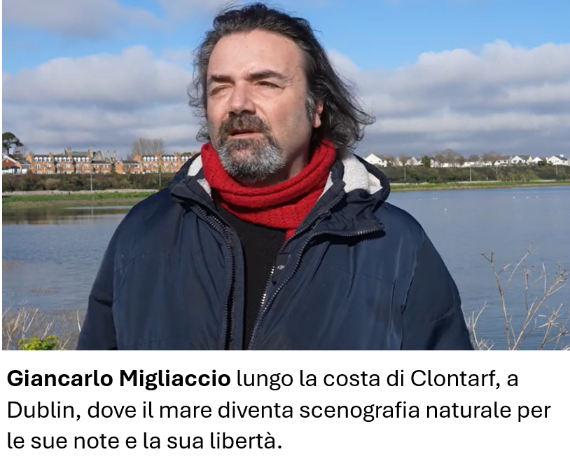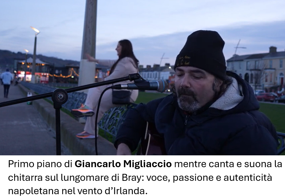 Ha lasciato la banca vent’anni fa per seguire la musica. Oggi, Giancarlo Migliaccio, napoletano, è uno dei buskers più riconosciuti di Dublino. La sua chitarra risuona tra Grafton Street e il lungomare di Bray, dove l’aria sa di libertà.